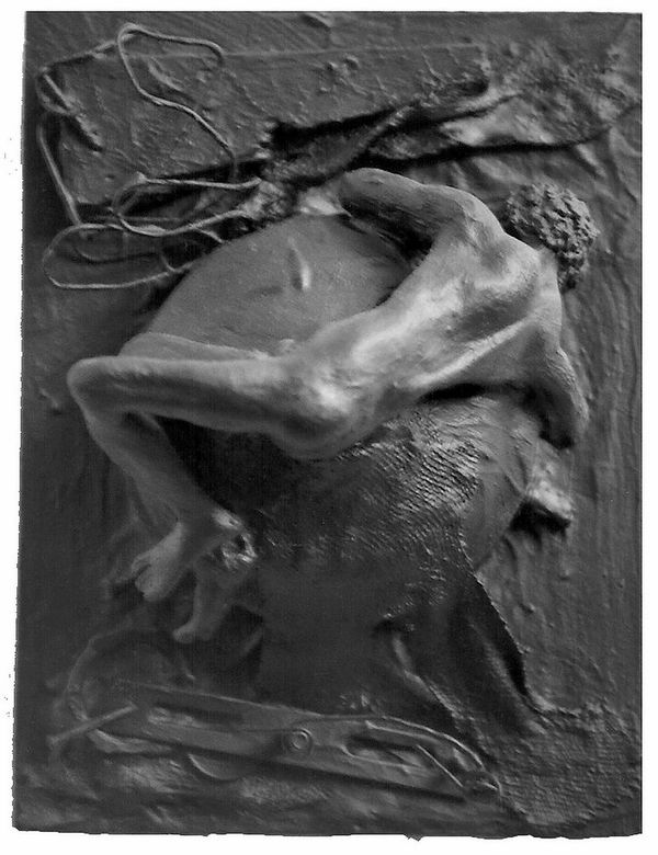 My assemblages are made with fabric, and found objects. The objects are sewn, and interlaced with the fabric, the finish is done with papier-mâché. My intention with this work is to draw attention to climate change. The work dialogues with catastrophes such as floods, tsunami and oils that pollute our seas and rivers.